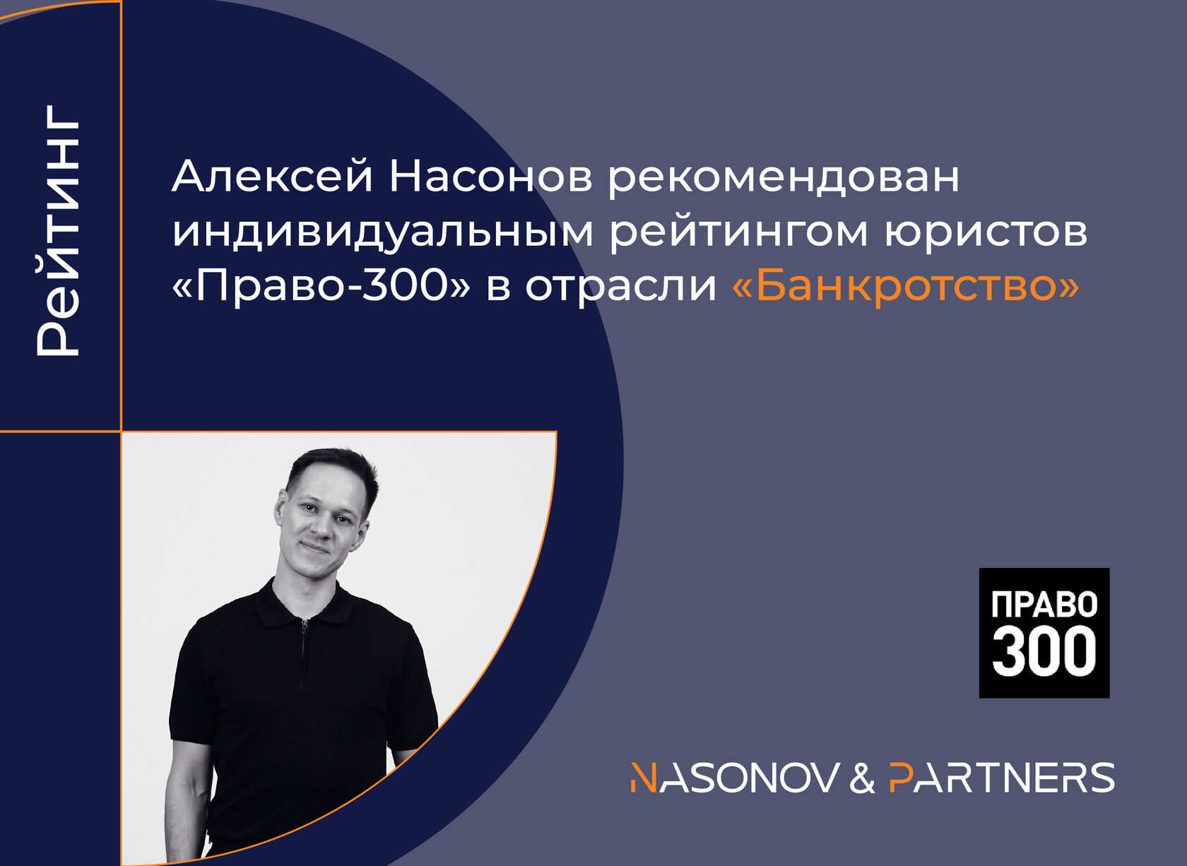 В числе рекомендованных юристов практики "Банкротство" регионального рейтинга отмечен партнер фирмы Nasonov&Partners Алексей Насонов